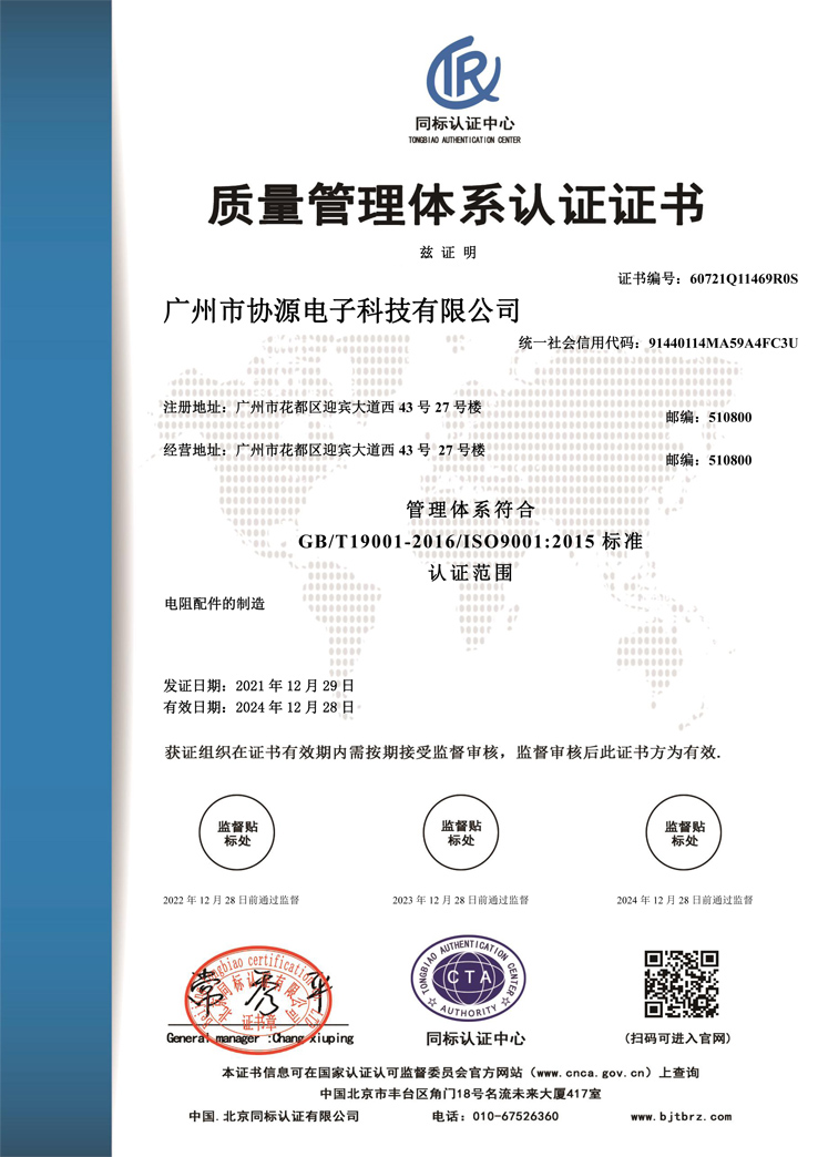 质量管理体系认证证书